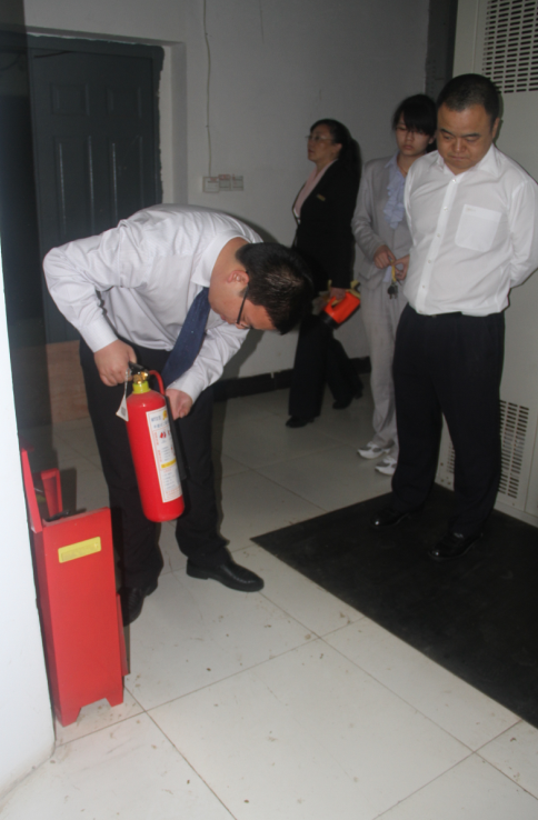 (圖為公司領(lǐng)導(dǎo)對(duì)消防設(shè)備進(jìn)行檢查)