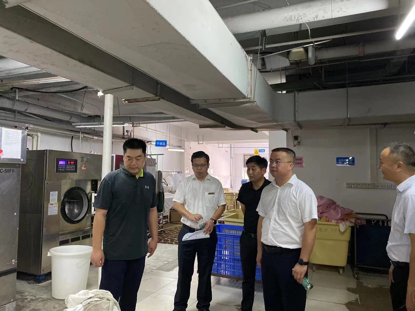 魯江一行先后查看了悅兮半島酒店洗衣房、鍋爐房、高壓配電房、總倉(cāng)、水上樂(lè)園等現(xiàn)場(chǎng),重點(diǎn)檢查了設(shè)備運(yùn)行、工作臺(tái)賬、值班記錄等情況。