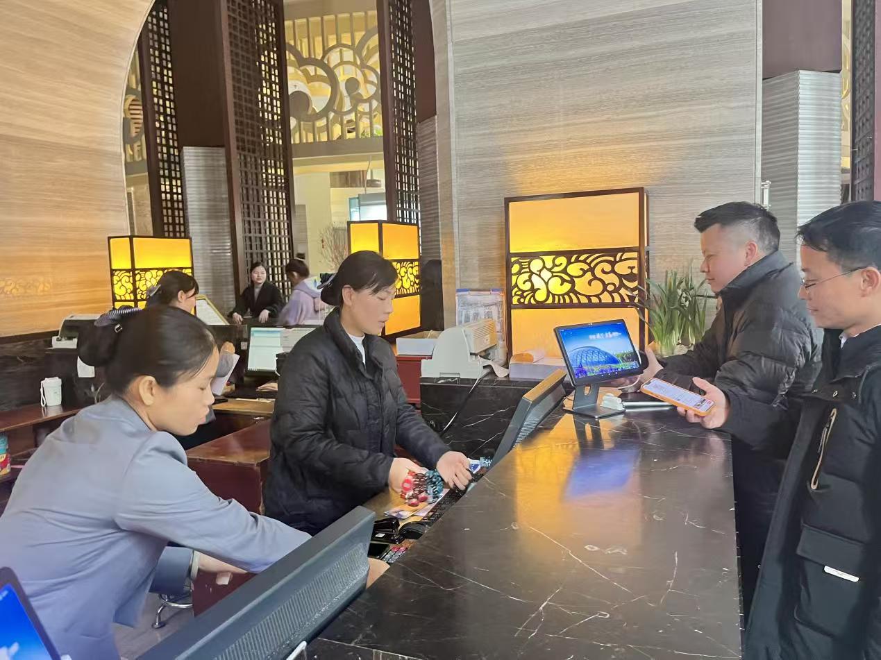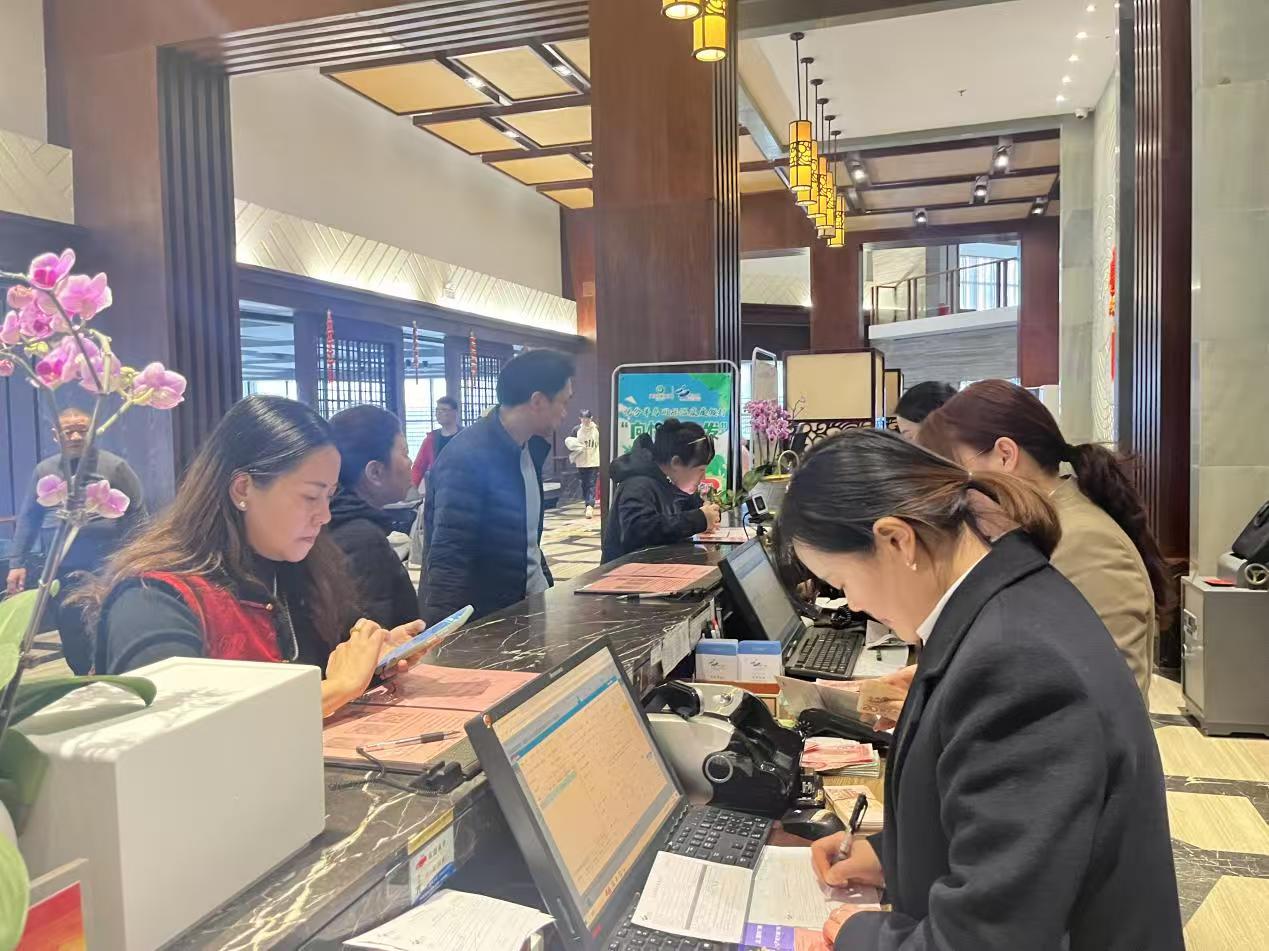 酒店大堂內(nèi)人潮涌動,前臺工作人員臉上始終掛著溫暖的微笑,耐心細(xì)致地為每一位賓客服務(wù)。他們雙手在電腦鍵盤上熟練敲擊,快速且精準(zhǔn)地為賓客辦理入住登記、溫泉入場手續(xù),分配房間、遞上手牌,面對賓客拋出的各類疑問,都能給出清晰、滿意的解答,讓每一位踏入酒店的客人都能感受到賓至如歸的體驗。