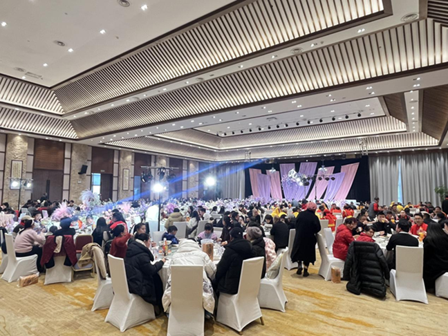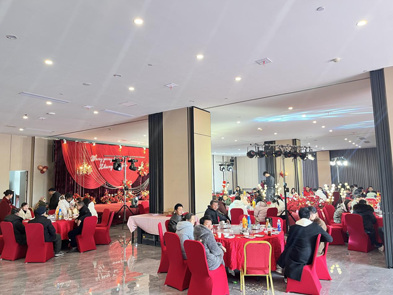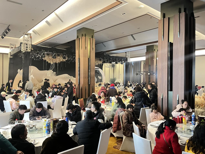 當(dāng)天,酒店內(nèi)處處洋溢著喜慶的氛圍。紅燈籠、中國(guó)結(jié)、新年窗花紙、鮮花裝飾等,將各個(gè)婚宴廳裝點(diǎn)得格外喜慶。每對(duì)新人都身著盛裝,臉上洋溢著幸福的笑容,與親朋好友們一同分享這人生中最重要的時(shí)刻。酒店工作人員也有條不紊的忙碌著,他們精心準(zhǔn)備每一道菜品,用心服務(wù)每一位賓客,確?;檠绲拿恳粋€(gè)環(huán)節(jié)都順利進(jìn)行。