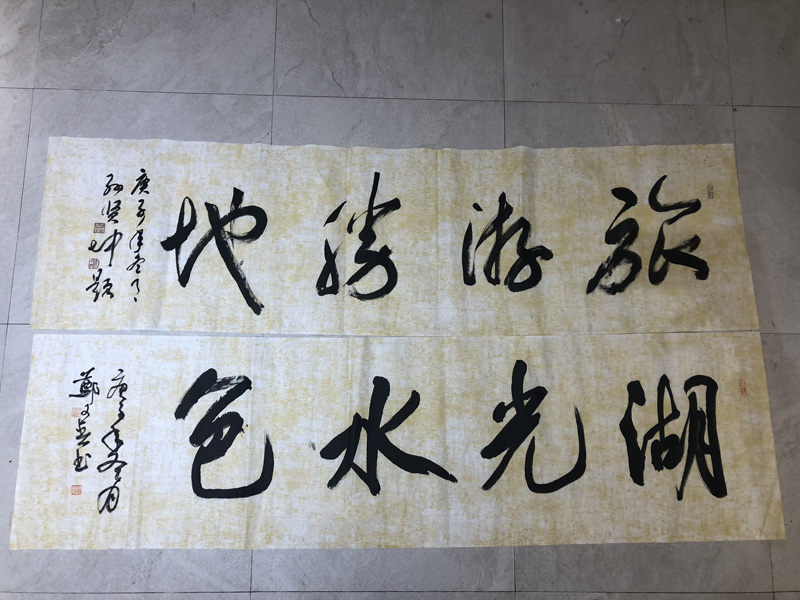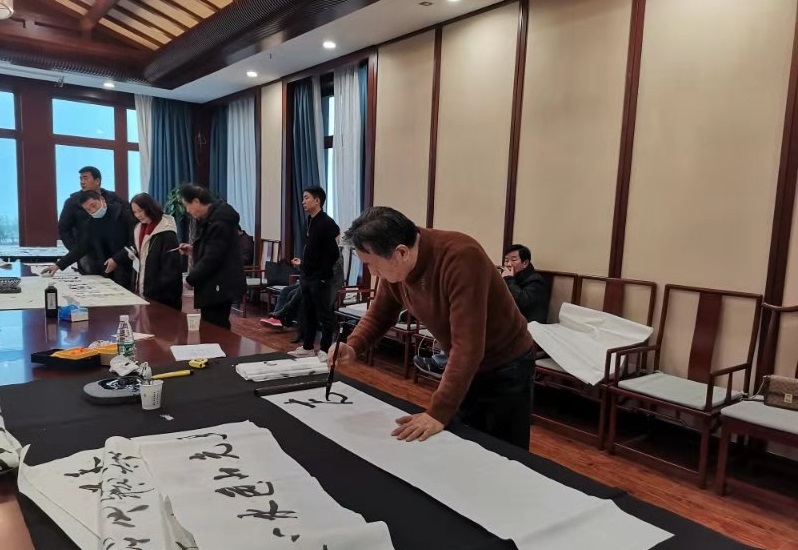 本次采風(fēng)組成員均為荊州市書法界、文學(xué)界知名藝術(shù)家,他們乘坐環(huán)湖旅游公司豪華游艇游覽了洪湖大湖,參觀了金灣驛站、環(huán)洪湖綠道、金灣花海和金灣酒店,對(duì)洪湖市近些年的變化感慨萬千,對(duì)洪旅集團(tuán)深耕洪湖、發(fā)展文旅、服務(wù)地方的成績(jī)贊嘆不已。各位藝術(shù)家睹景抒懷,在金灣酒店涵云樓潑墨揮毫,共創(chuàng)作書法作品百余幅。