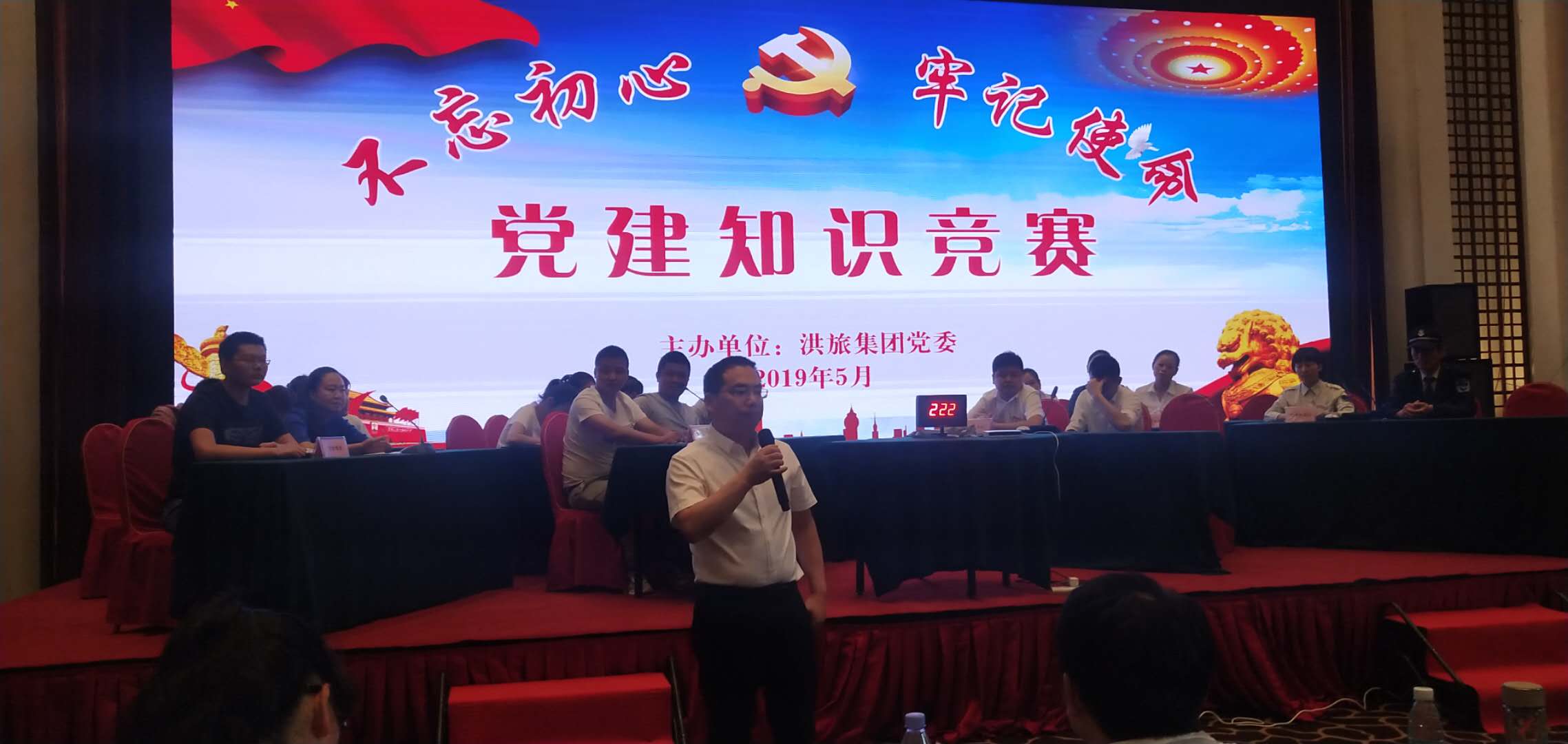 5月29日下午,洪旅集團黨委在悅兮半島洪湖廳開展“不忘初心 牢記使命”黨建紀檢知識競賽。全體黨員干部職工及入黨積極分子約40人參加競賽活動。